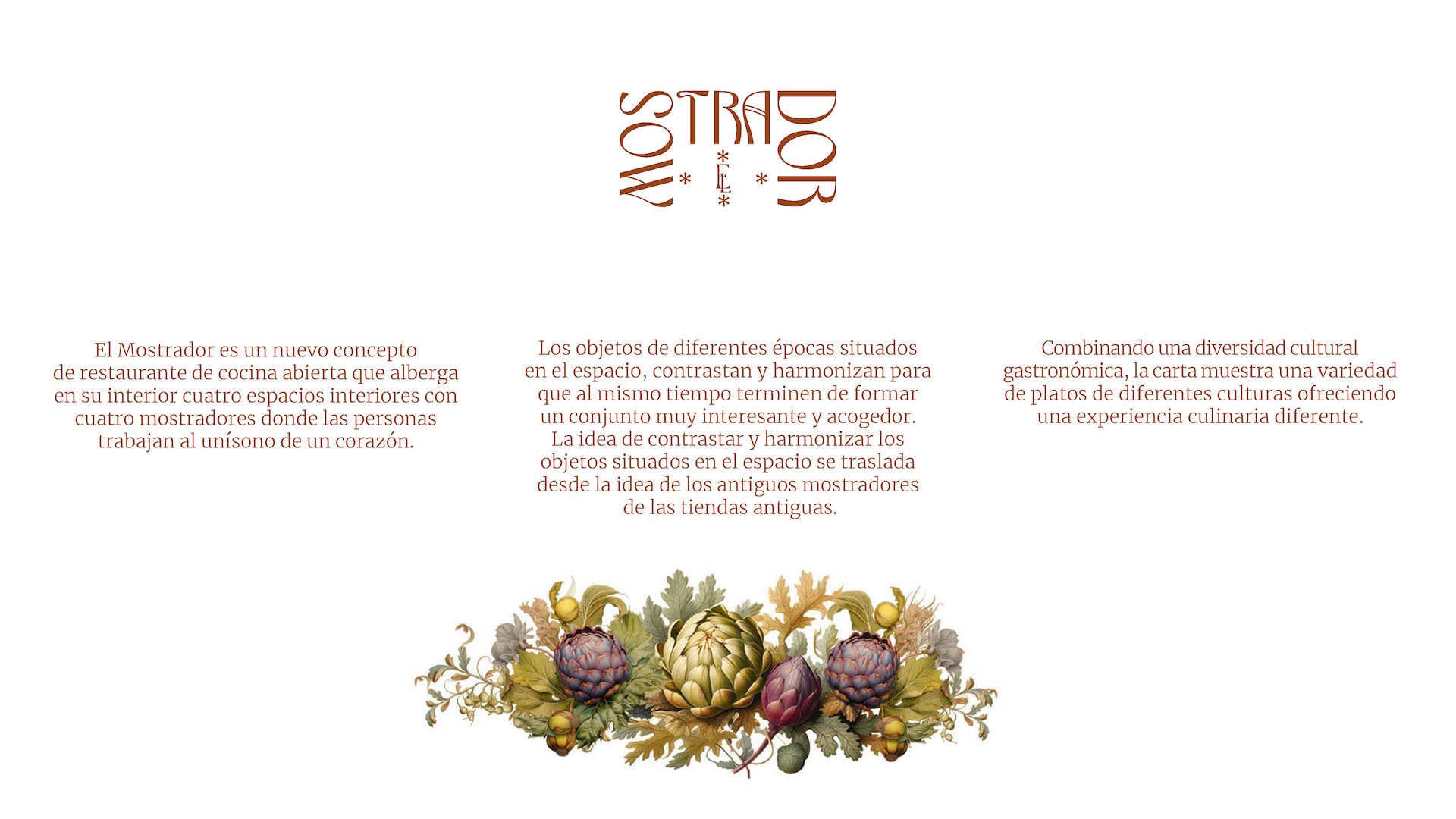 La idea de contrastar y harmonizar los objetos situados en el espacio se traslada desde la idea de los antiguos mostradores con lo que también transciende al diseño de la carta de del restaurante.